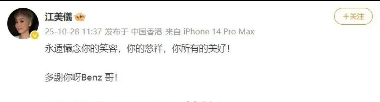 因癌症致器官衰竭安详离世,享年76岁。这个演了半辈子配角的“金牌绿叶”,用50年的演艺生涯,把“角色无大小”的道理,刻进了每一个观众的记忆里。消息刚传开,圈中好友的悼念就像潮水般涌来。惠英红在社交平台写下“愿天堂没有病痛、安息”,简单几个字里藏着说不尽的心疼;江美仪称呼他为“Benz哥”,回忆起他的笑容和慈祥,末了还说“多谢你呀”;TVB官方也发文致敬,称他是“无线大家庭不可或缺的一员”。