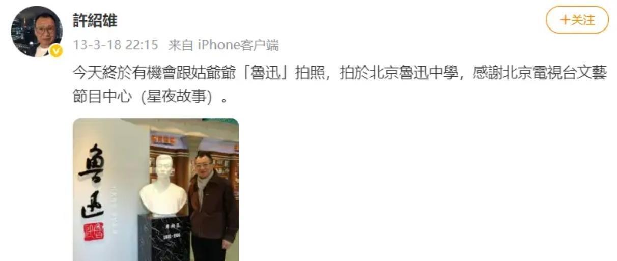 他曾在社交平台分享过在北京鲁迅中学跟鲁迅雕像的合照,笑着说“终于跟姑爷爷合了影”,言语间满是骄傲。而粤语老片《七子登科》,讲的就是他们家族的故事,可见家族的底蕴早已刻进他的骨子里。许绍雄常说:“人生最大的遗憾,不是错过了你最在乎的人,而是错过了最在乎你的人。”他还提醒大家:“珍惜现在对你好的人,有些人再见就是一辈子。”这些话如今听来,更像他对自己人生的总结。