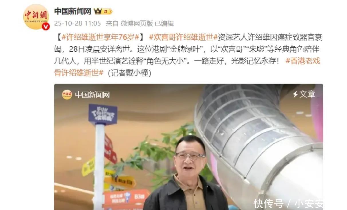 前一天佘诗曼出席活动被问起他的情况,当场红了眼眶,连话都讲不完整——他在圈里的好人缘,早就在一个个合作里攒成了人心。其实早在10月27日,许绍雄就突然病危入院。家人和好友被急召到医院。大家握着他的手,还在盼着奇迹发生。可仅仅过了一晚,他就永远地闭上了眼睛。让人唏嘘的是,10月10日他还在社交平台发视频,笑着跟大家说“人生苦短,来日并不方长”,谁能想到,这会是他留给我们的最后一句叮嘱?